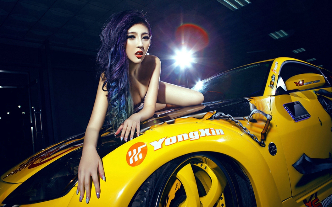 改装车惹火冷艳美女车模美腿高跟鞋火辣妖艳销魂诱人写真